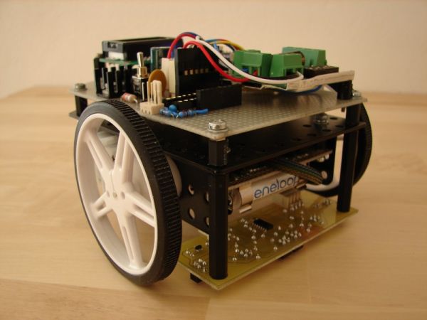 Palubním počítačem je Arduino Nano 3.0, které je osazeno procesorem ATmega328 na 16 MHz. Ovládání motorů zajišťuje dvojitý h-můstek od firmy Pololu osazený čipem TB6612FNG. O generování PWM a řízení směru se stará PICAXE 14M2 na 4 MHz. Ten je z Arduina ovládán přes sériovou linku komunikující rychlostí 9600bps. Ovládání motorů zajišťuje modul Sarbetooth 2x5, který je ovládán z Arduina prostřednictvím sériové linky komunikující rychlostí 9600bps.