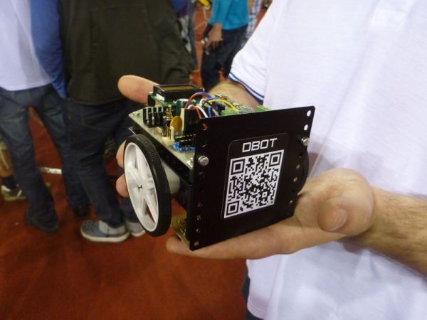 Vzal jsem DBota ukázat do RoboDoupěte. Místo slov bezmezného obdivu byla jeho funkce zkritizována ;-) Vzal jsem si obdržené rady k srdci a hned na místě ho trochu přestavěl a přepsal program. Výsledkem je, že robot funguje o dost lépe. Všem zainteresovaným jsem pochopitelně zavázán :-).